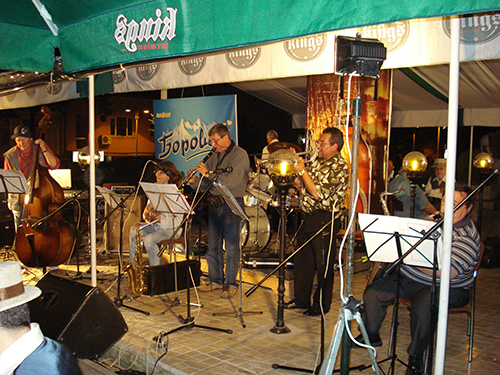 "Джаз класик бенд" при участието им на "Dixie Jazz Fest" - В. Търново (2008). Музиканти (отляво надясно): Недко Коларов, Пламен Чепанов, Илко Илиев (ръководител), Николай Рушанов, Иван Зъбарев. Изображение: Архив на Илко Илиев