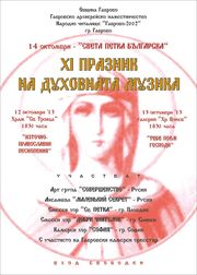 | 09:32, 19 януари 2023 | Duhovna-muzika.jpg (файл) | 84 КБ | Admin (беседа | приноси) | Плакат от 11-ия Празник на духовната музика в Габрово. Изображение: gabrovo.bg | 1 | |